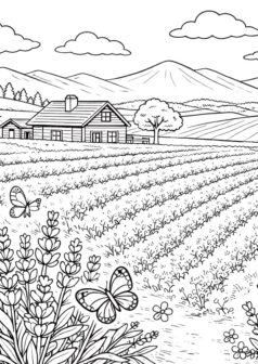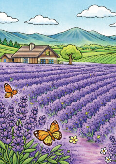 このぬりえは、架空のラベンダー畑をイメージして作ったものです。