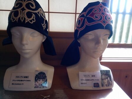 実際に見てみると、**ゴールデンカムイで見たことがあるようなデザインのマタンプシ(鉢巻)**が展示されていて、「あ、これ見たことある」と思わず感じる場面も。